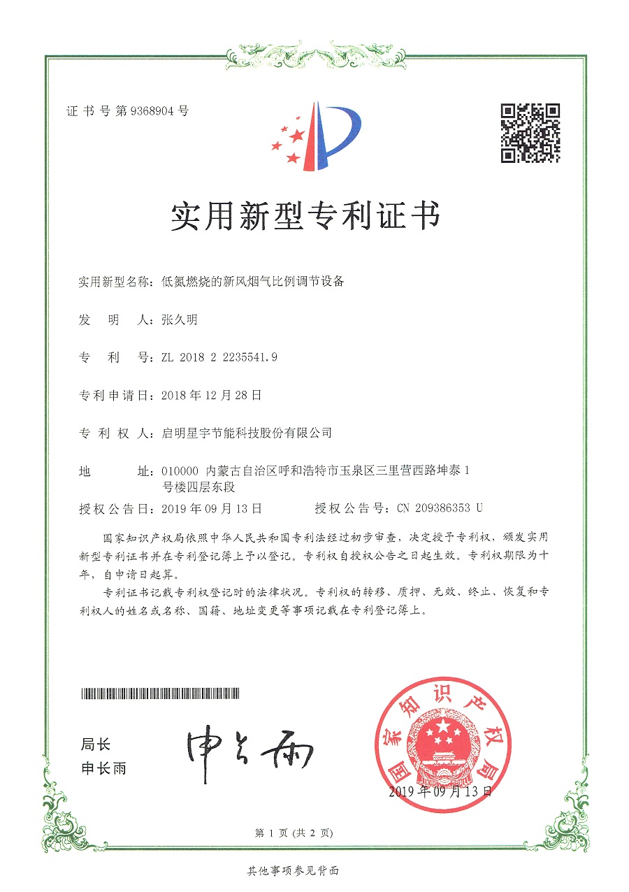 低氮燃燒的新風(fēng)煙氣比例調(diào)節(jié)設(shè)備實(shí)用新型專利