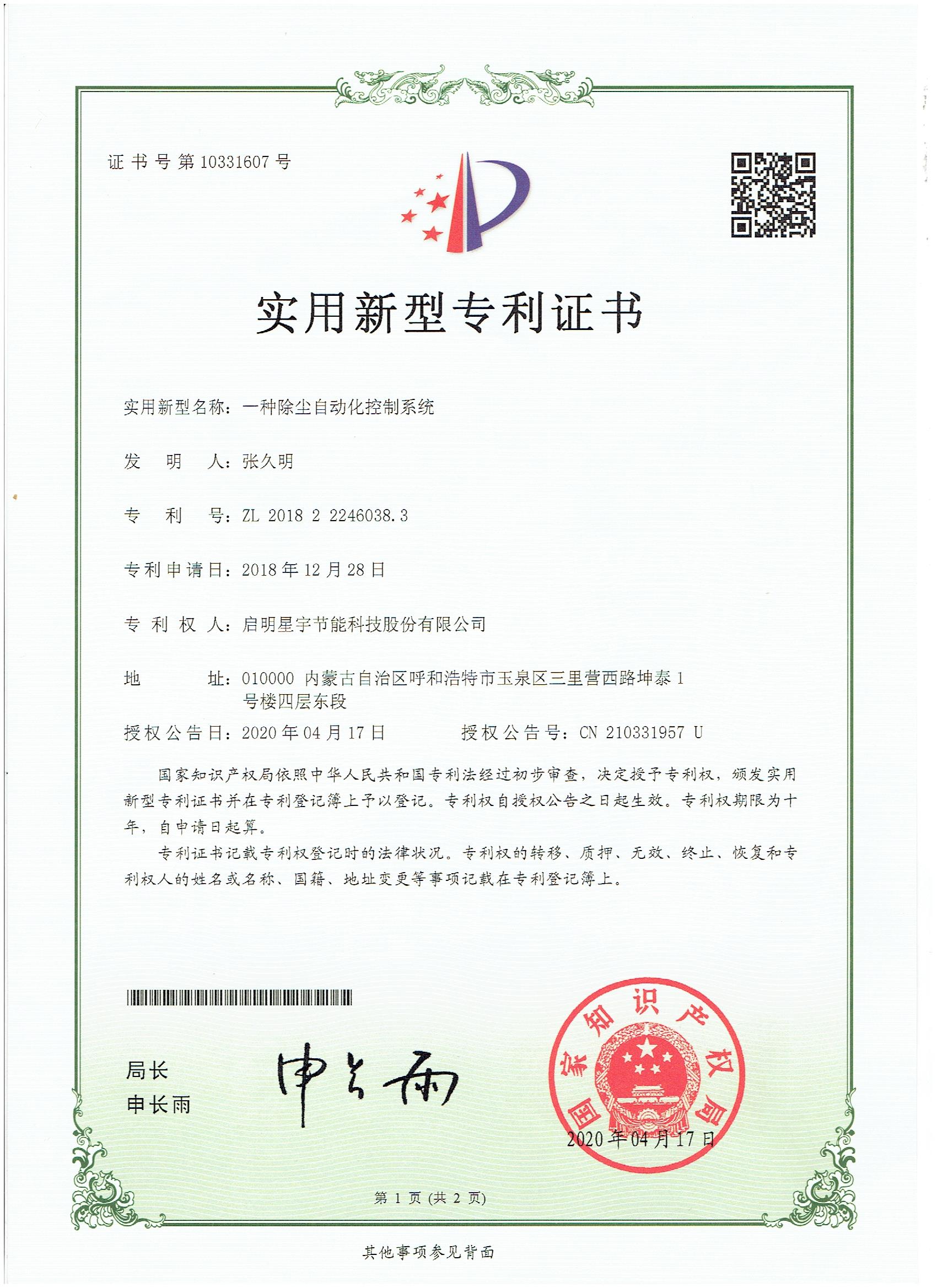 一種除塵自動化控制系統