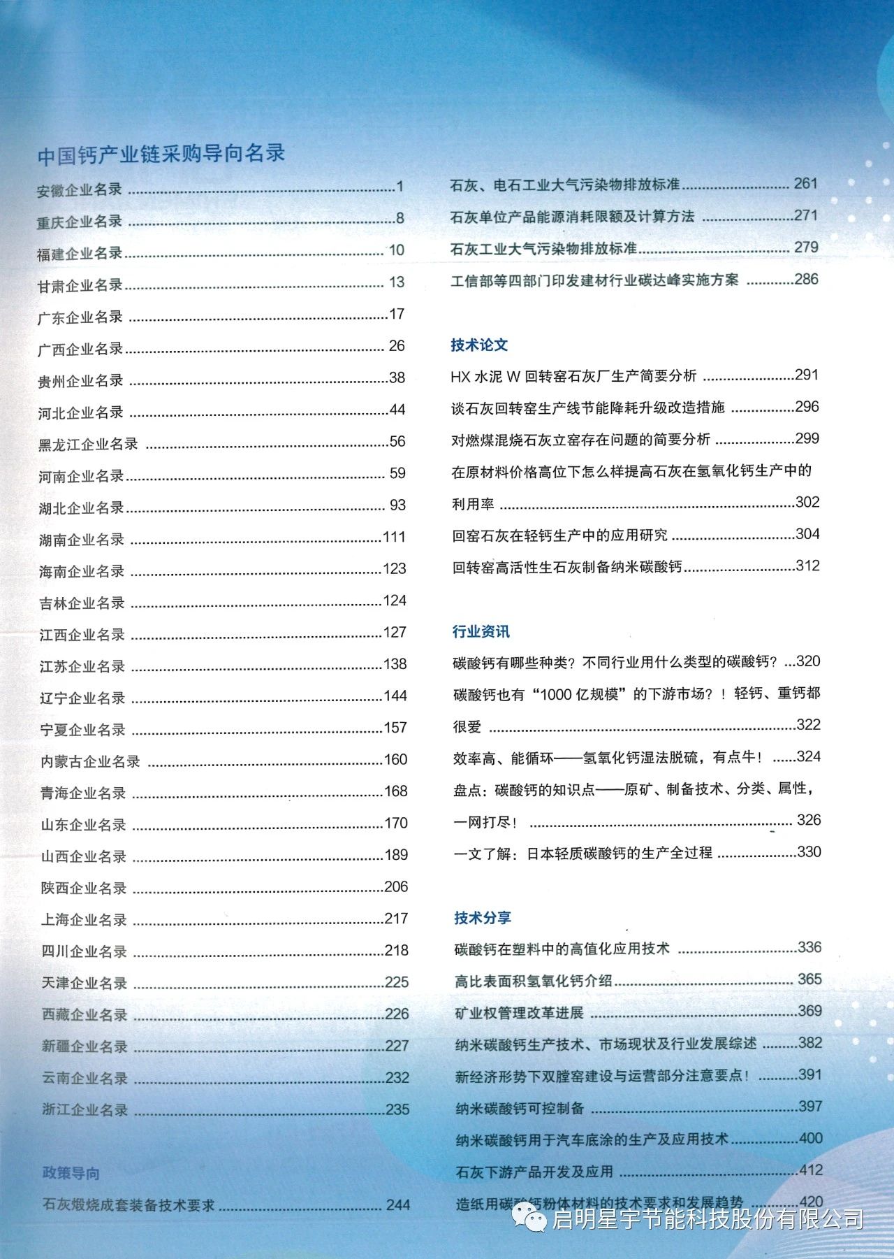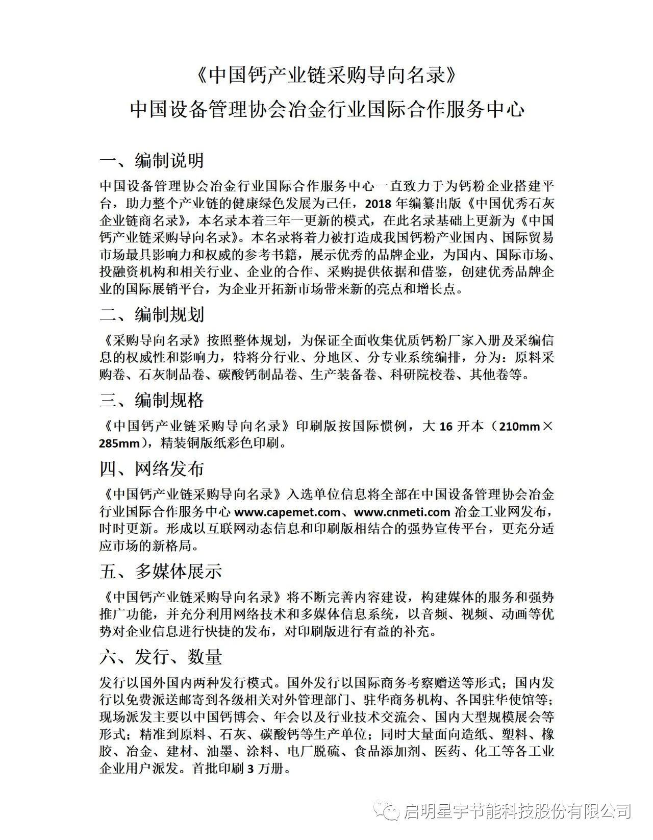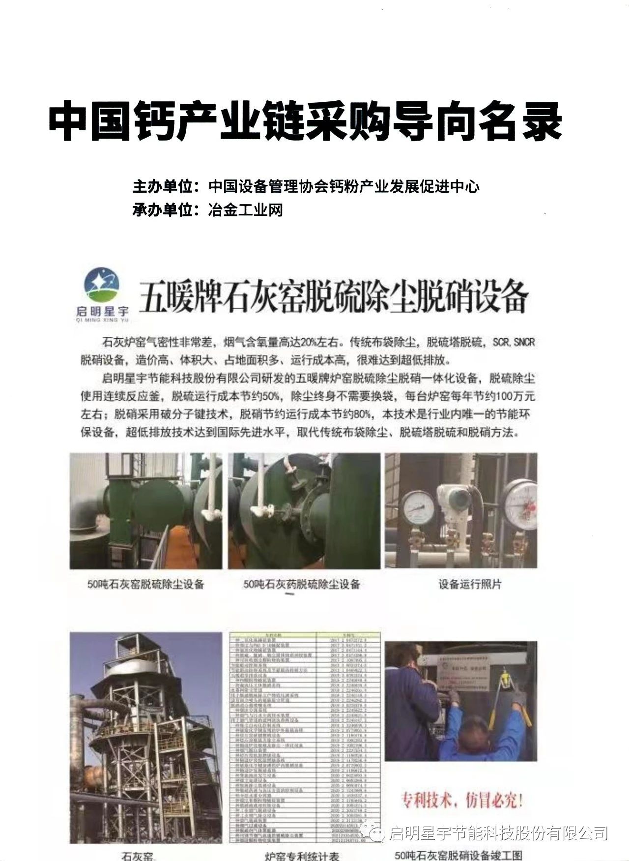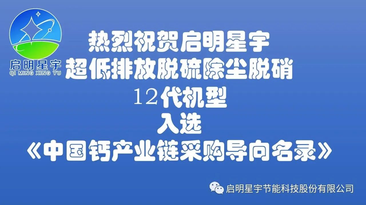 啟明星宇節能科技股份有限公司入選《中國鈣產業鏈名錄》