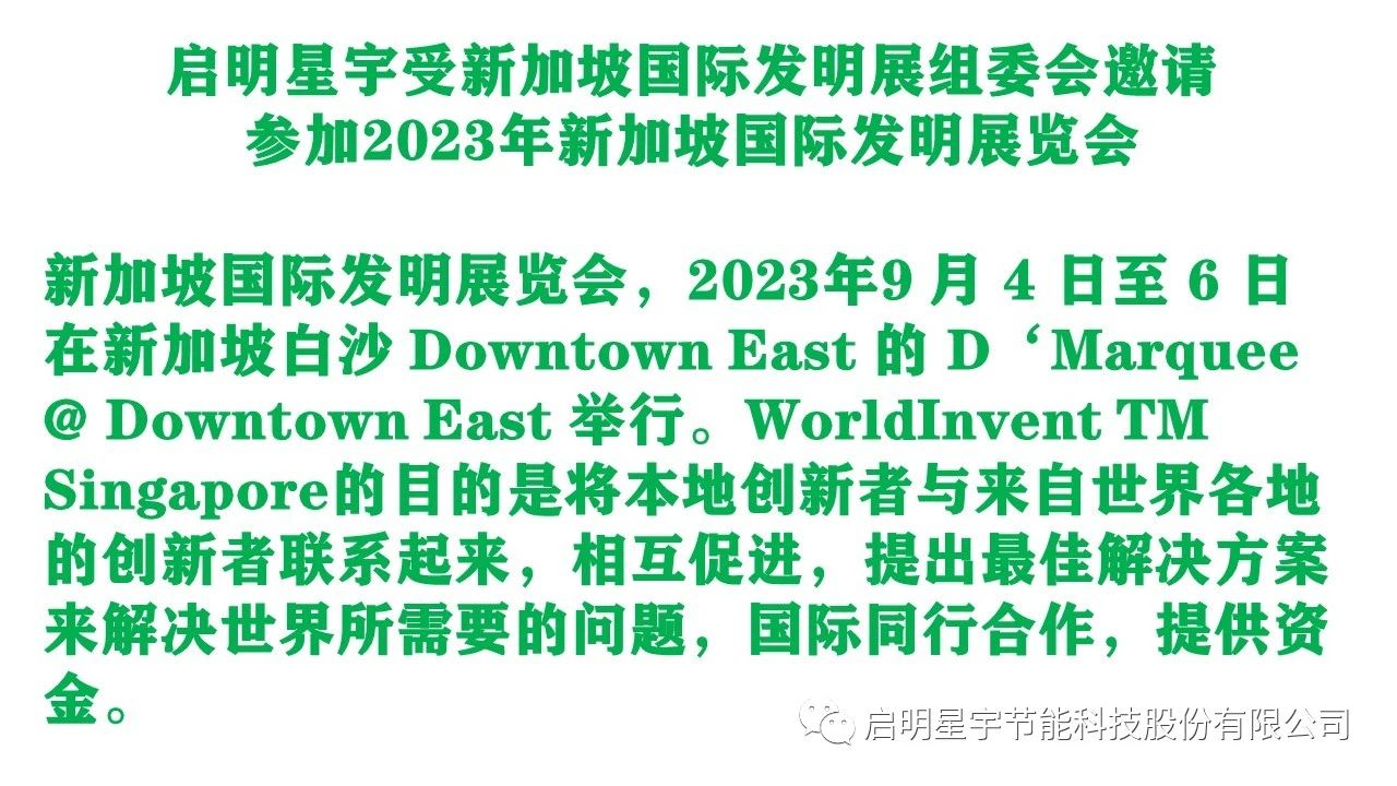啟明星宇走出國門,受邀參加新加坡發明展覽會