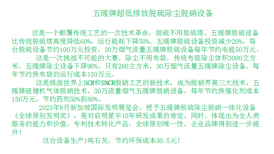 啟明星宇,五暖牌超低排放脫硫除塵脫硝設(shè)備,獲得新加坡國(guó)際發(fā)明展覽會(huì)《全球最佳原創(chuàng)發(fā)明獎(jiǎng)》,同時(shí)獲得,新加坡國(guó)際發(fā)明展覽會(huì)雙金獎(jiǎng)
