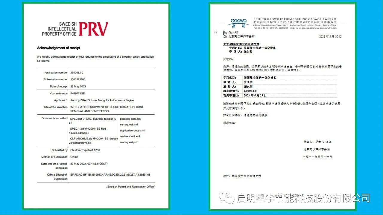 2023啟明星宇專利開始布局國(guó)際市場(chǎng),我們瑞典斯德哥爾摩提交一項(xiàng)《脫硫除塵脫硝一體化設(shè)備》,與諾貝爾物理化學(xué)綜合獎(jiǎng)碰撞。同時(shí),參加日內(nèi)瓦和新加坡發(fā)明展覽會(huì),取得了日內(nèi)瓦雙金獎(jiǎng),新加坡雙金獎(jiǎng),世界原創(chuàng)發(fā)明家驕人業(yè)績(jī)。國(guó)內(nèi),繼續(xù)研發(fā),撰寫6項(xiàng)發(fā)明專利,6項(xiàng)實(shí)用新型專利。